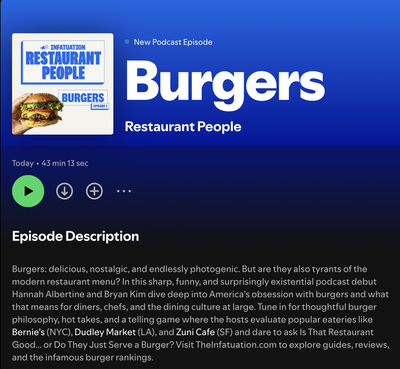 developed original video podcast series for Infatuation’s first foray into the medium. launched August 2025 on all major podcast platforms and YouTube.